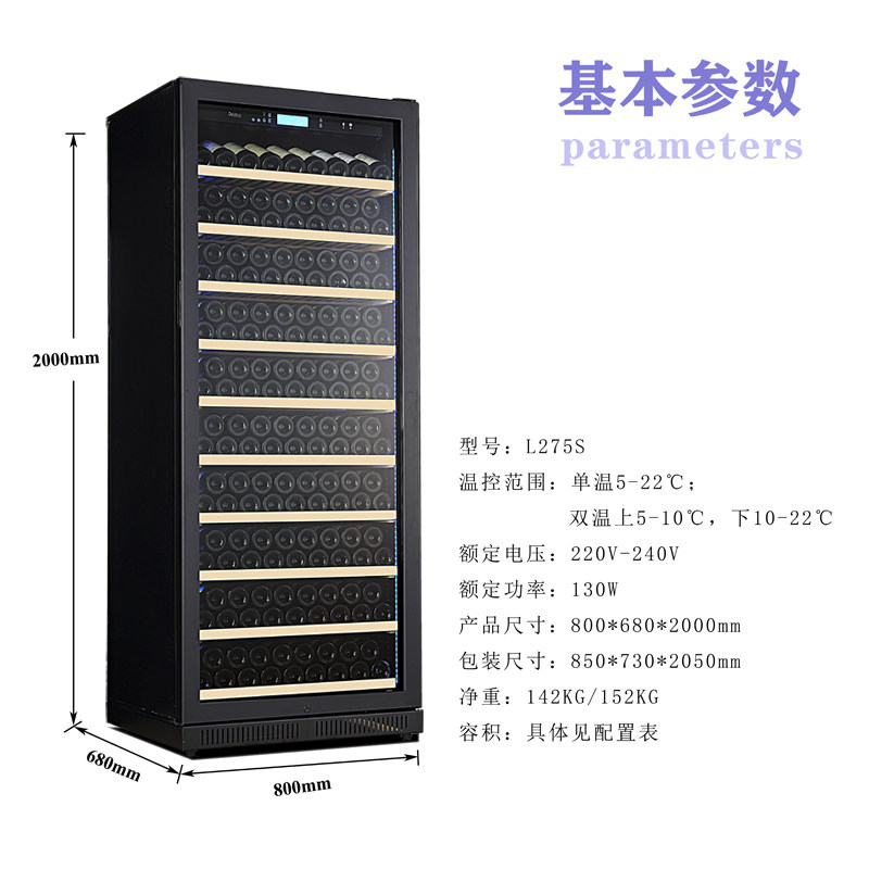 LeBarr L275S constant temperature and humidity compressor Wine cabinet large capacity cost-effective anti-fog door