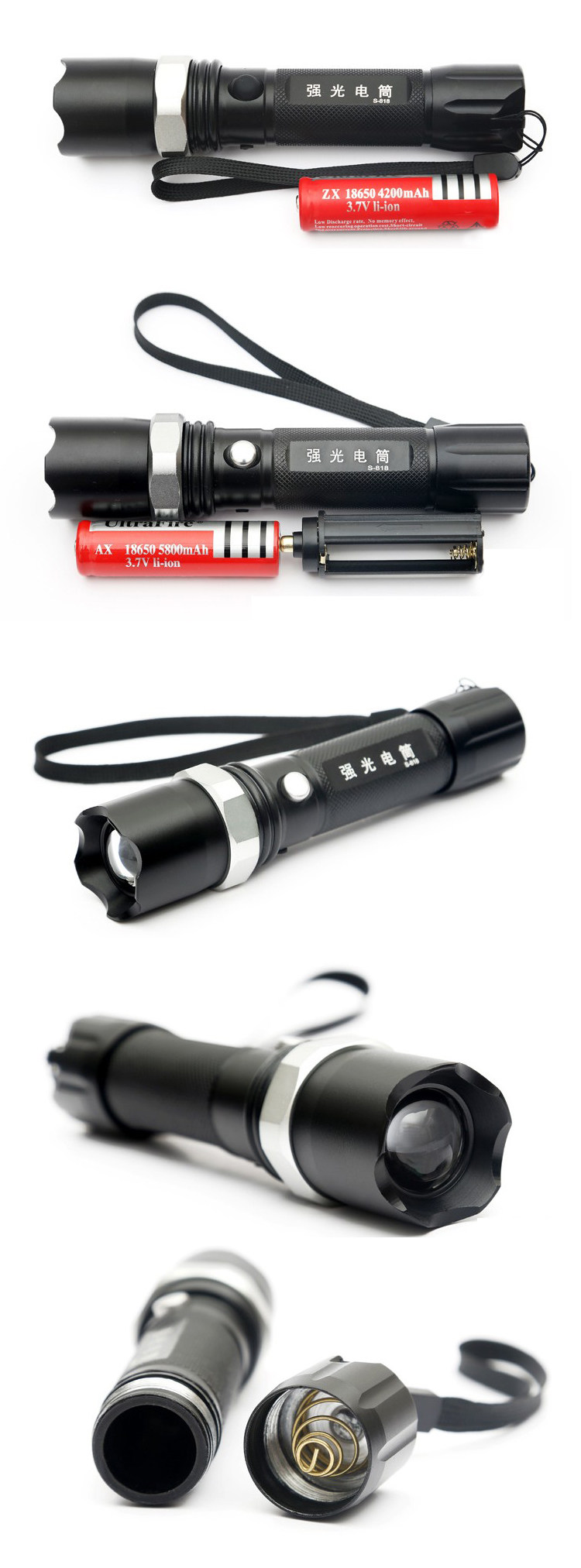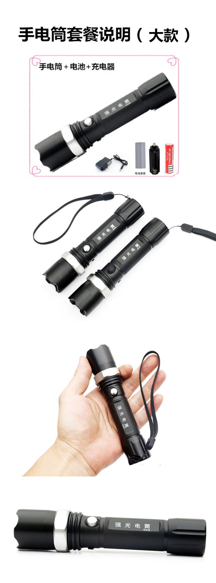 Intense Light Flashlight Zoom Led Charging Aluminum Alloy Portable Torch Security Patrol Home Lighting Flashlight