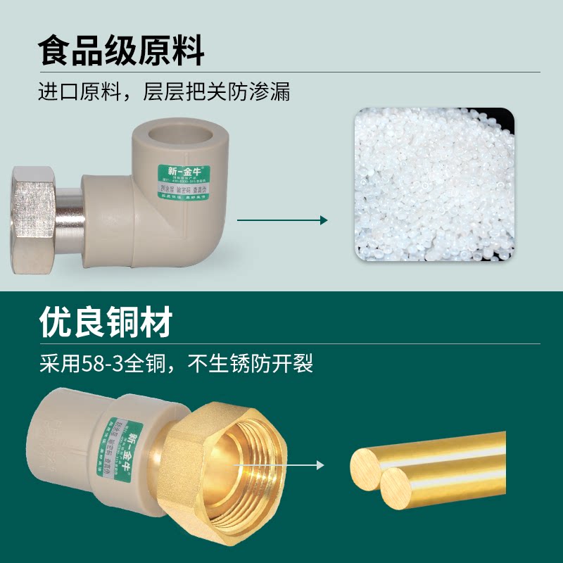 New One Golden Bull Grey PPR Water Heater Live 4 Points 6 Points 1 Inch Live Straight Live Bend Front Water Purifier Water Heating Accessories