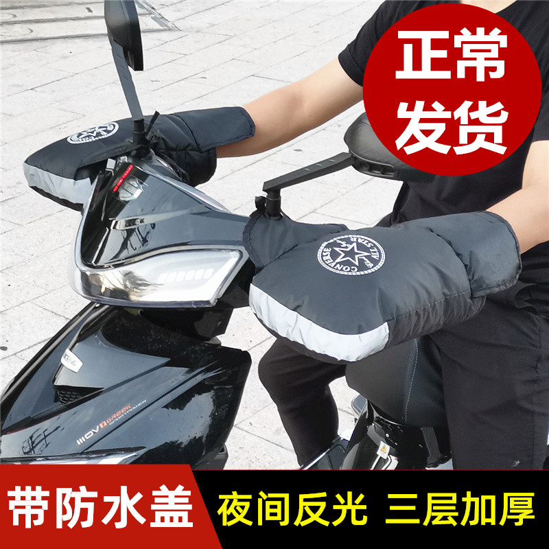 (New) Thickened Waterproof Reflective-Knee Guards Curved Beam Motorcycle Scooter Special (Thickened Big Mouth Universal Grip Front Side Waterproof Cover Reflective Thumb Plus Velvet (Cow Running) Universal Grip Front