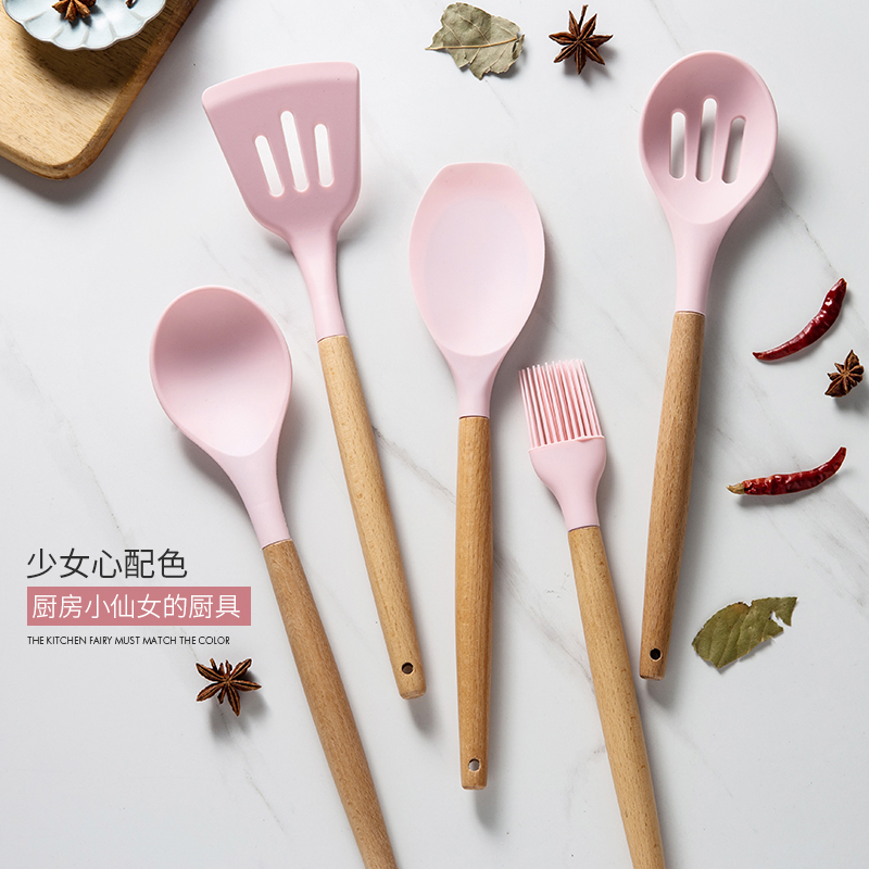 Mi Standers Small Fairy Pink Silicone Shovels Suit Soup Spoon Leaking Spoon Food Grade Non Stick Pan Special Sautlet Shovels-Taobao