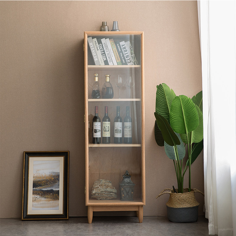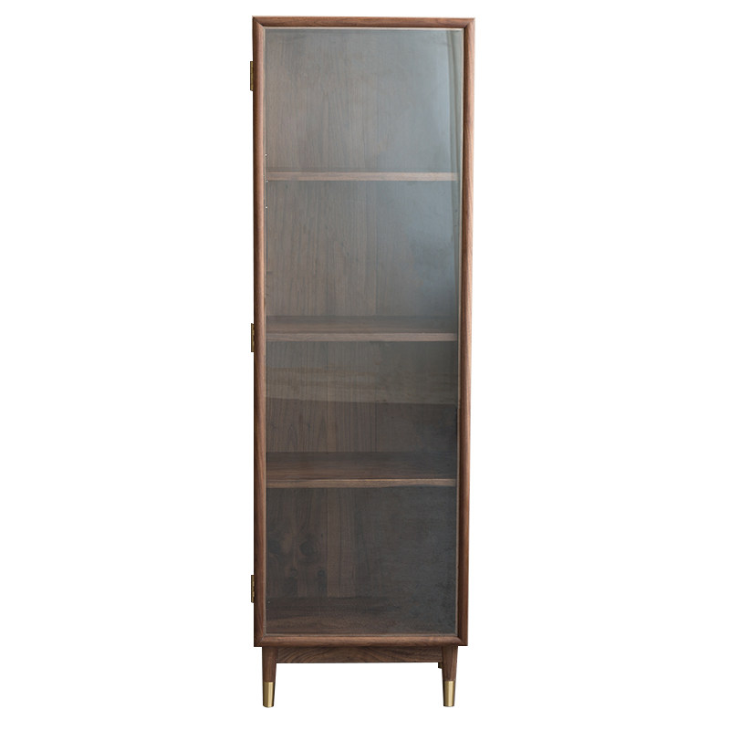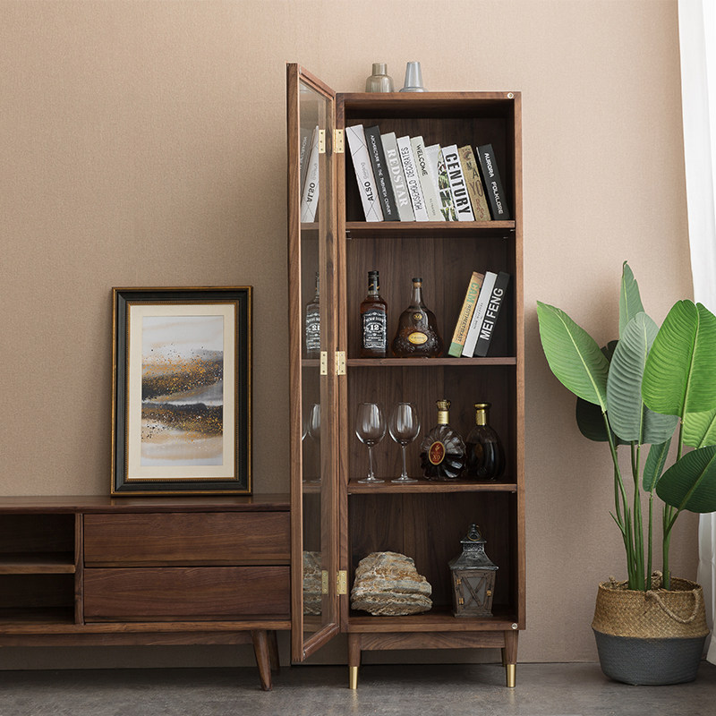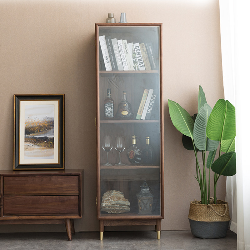 Nordic solid wood bookcase black walnut display cabinet storage cabinet glass door TV side cabinet living room side cabinet vertical cabinet