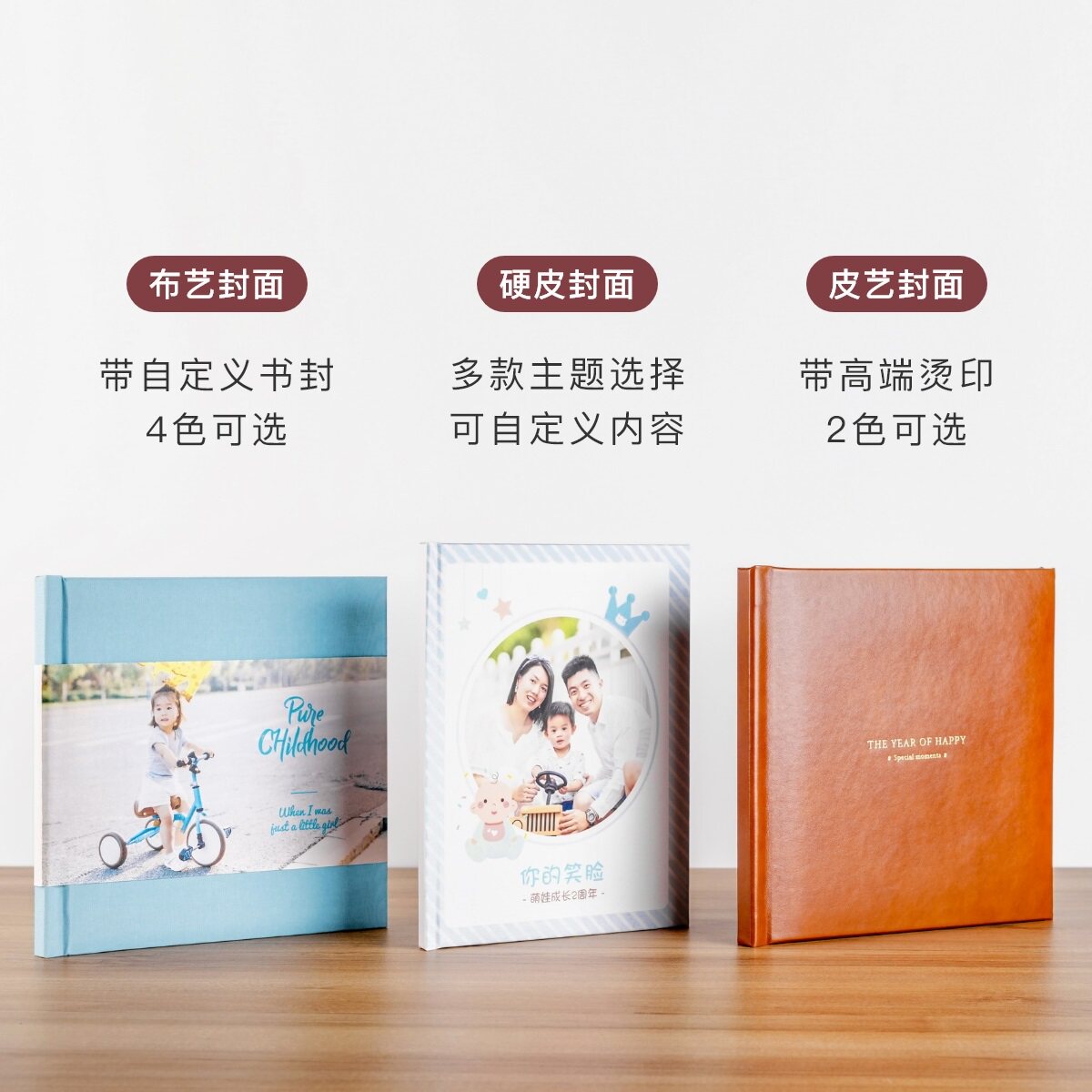 Square cover (20*20cm) Hardcover cover Large vertical book (20*26.5cm) Hardcover cover Large horizontal book (28*21cm) Hardcover cover Square album (20*20cm) Fabric cover Dafang album (25*25cm) Fabric cover Dafang album (25*25cm) Leather cover