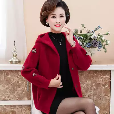 Fat mother Spring and Autumn Mank velvet jacket short fattening plus size middle-aged lady hooded jacket foreign pie new style