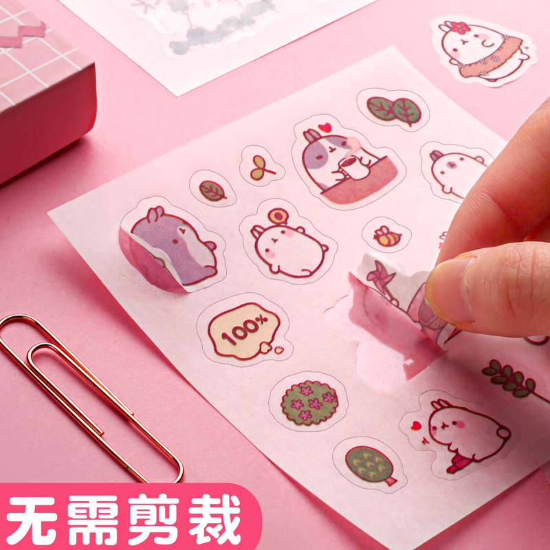 100 Handbook stickers hand account book cane decoration small pattern animation character ancient style stickers a material transparent gift bag set cute girl ins Wind Mobile phone paper cheap a box