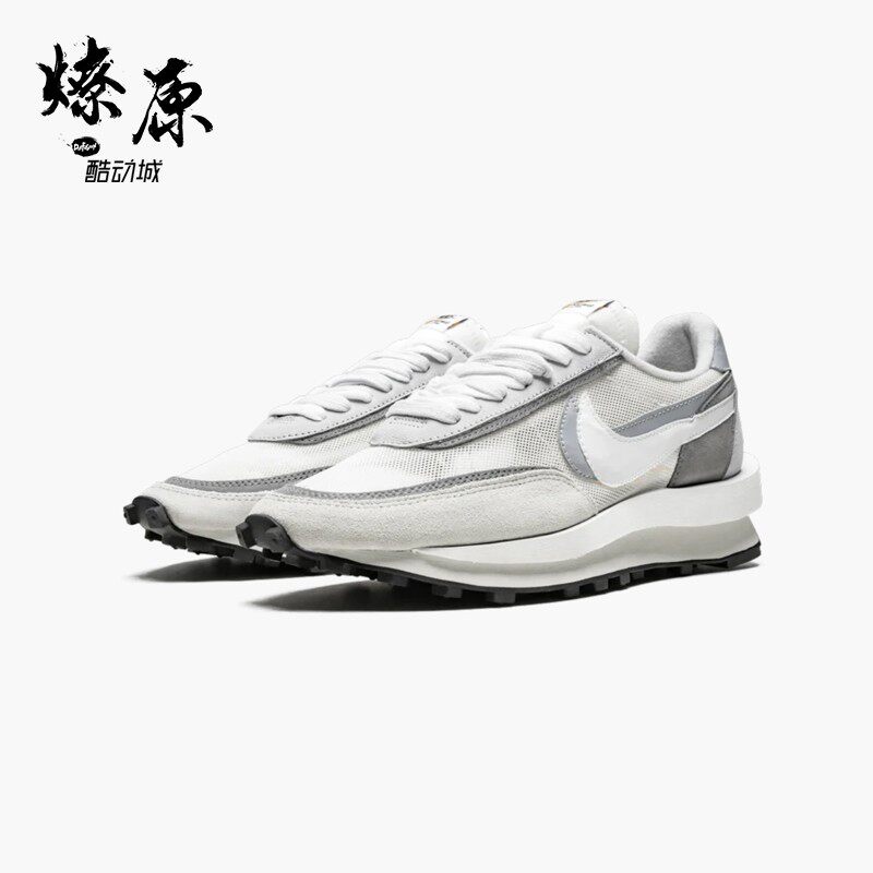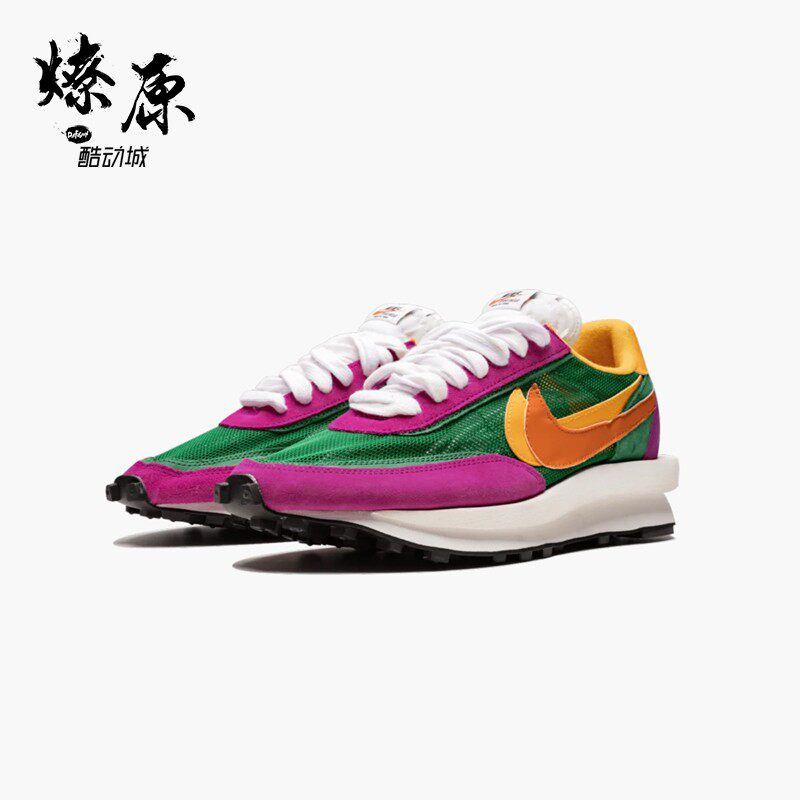 NIKE sacai LDV Waffle black and white gray powder green deconstructed running shoes BV0073-001-100-301