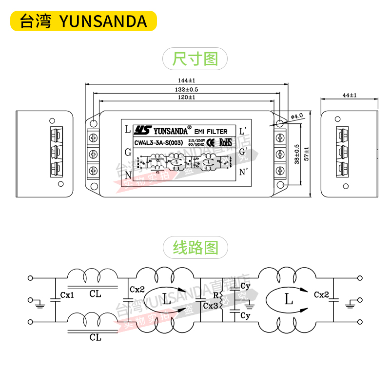 Taiwan YUNSANDA single-phase 220v three-pole energy-saving power filter CW4L3-30A-S terminal block inverter
