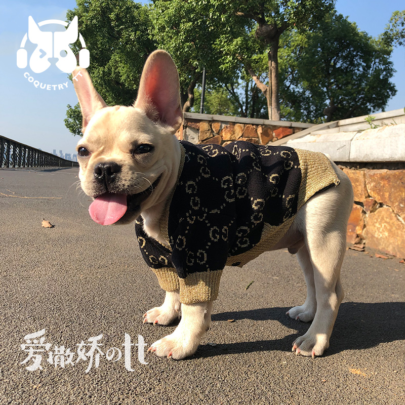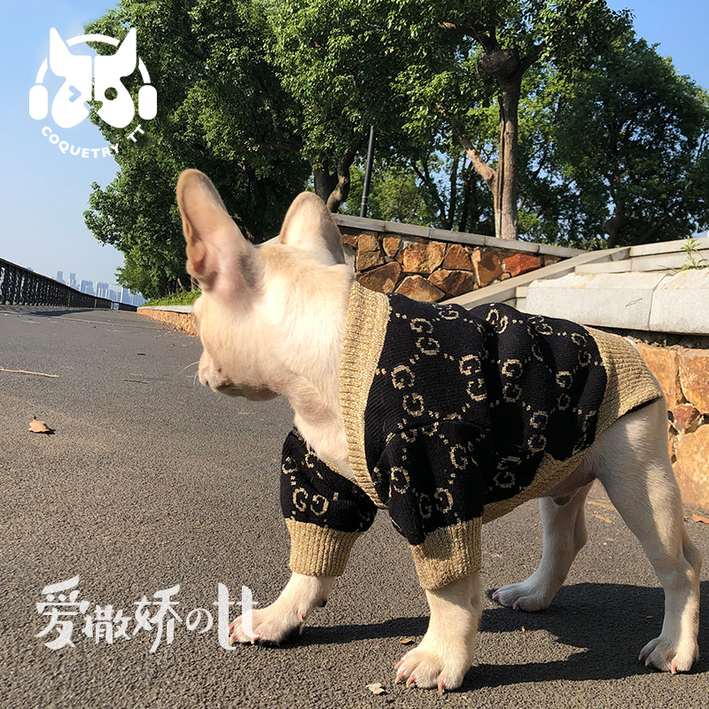 TT tide brand G letter pet dog clothes Teddy French bucket spring and autumn knitwear small and medium-sized dog warm sweater cardigan