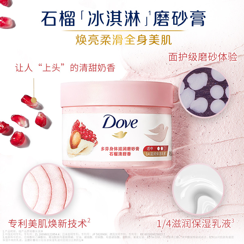 Dove Body Scrub Moisturizing Exfoliating 298g + Botanical Fermented Red Pomegranate Body Wash 500g
