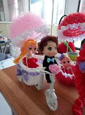Bicycle floral decoration Car flower basket decoration Small float decoration Tricycle fan doll DIY baby decoration props