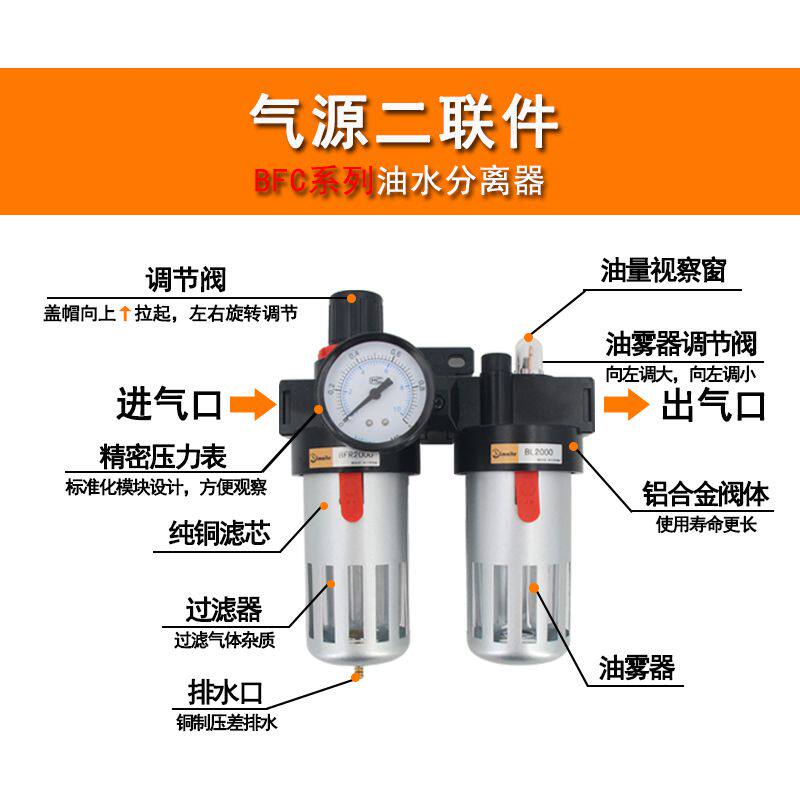Pneumatic air source treatment filter BFC-2000 3000 4000 two-piece BFR BL pressure regulating oil-water separation