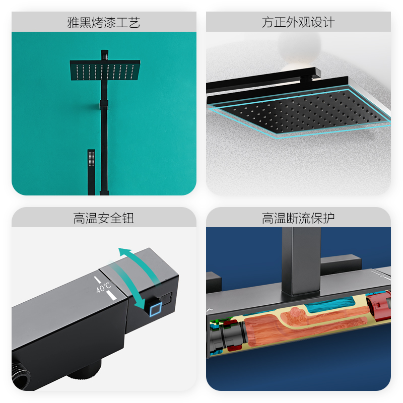 Jiumu Shower Shower Nozzle Bathroom Bath Kit Home Bath Constant Temperature Black Shower Kit