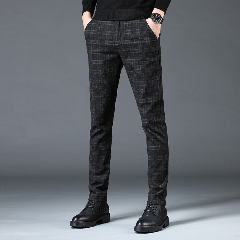 Plaid casual pants men's Korean version of the trend straight pants autumn handsome plaid pants barber all-match pants small man