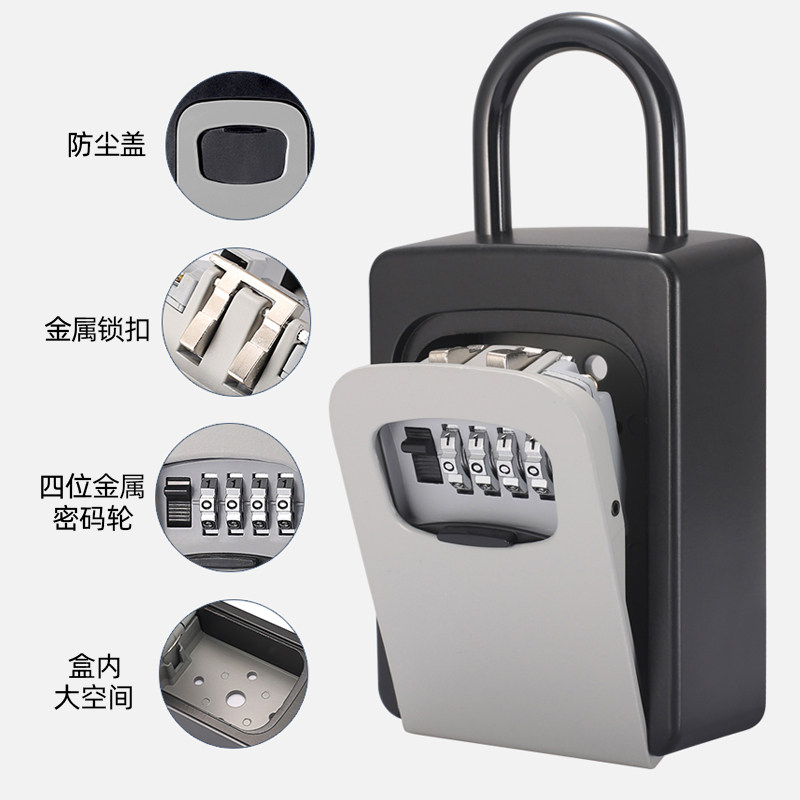 Installation-free wall-mounted keybox storage box outdoor residential crypto keybox metal password padlock keybox