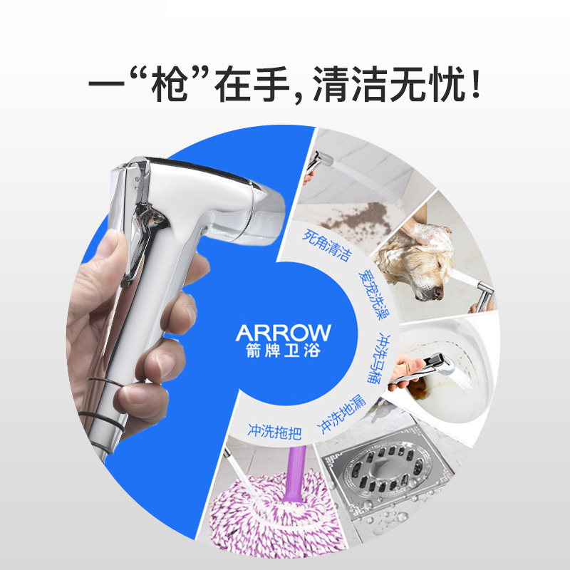 Arrow Toilet Companion Flushing Spray Gun Tap High Pressure & Tee Wash Fart Spray Head Makeup Room Gynecological Cleaner