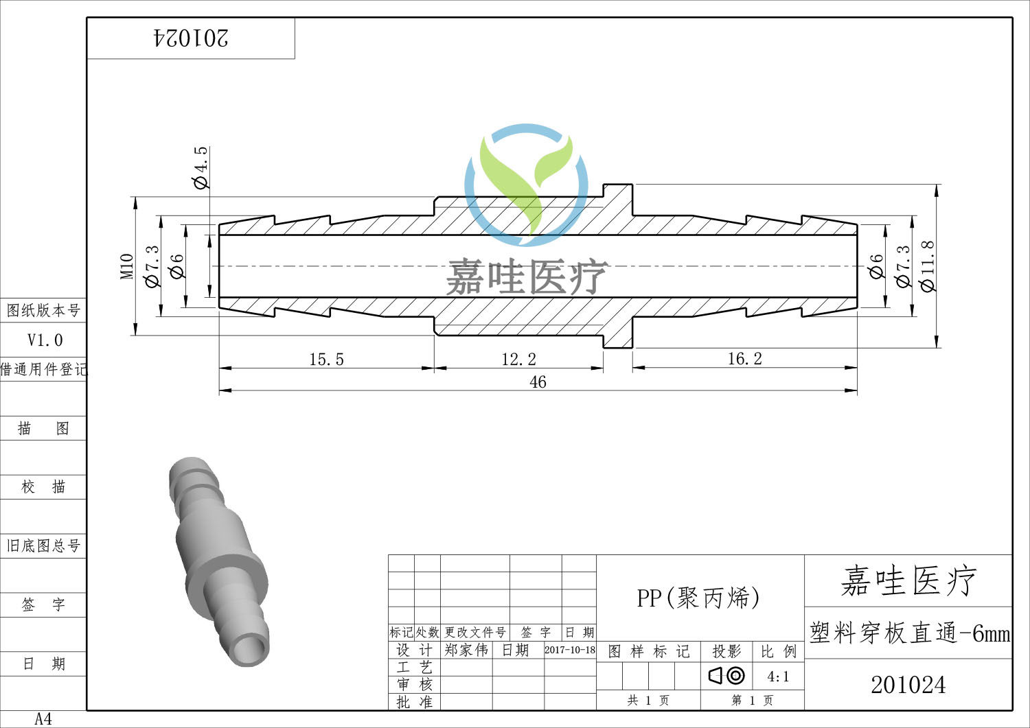 Plastic wearing plate pagoda straight through the diameter joint gas nozzle of Baota connector PP material polypropylene hose separator
