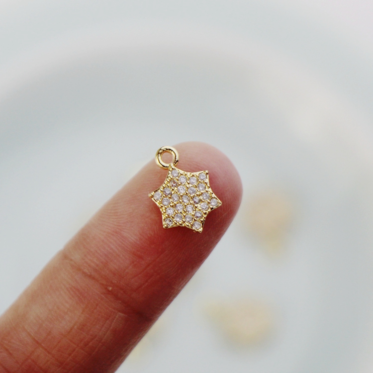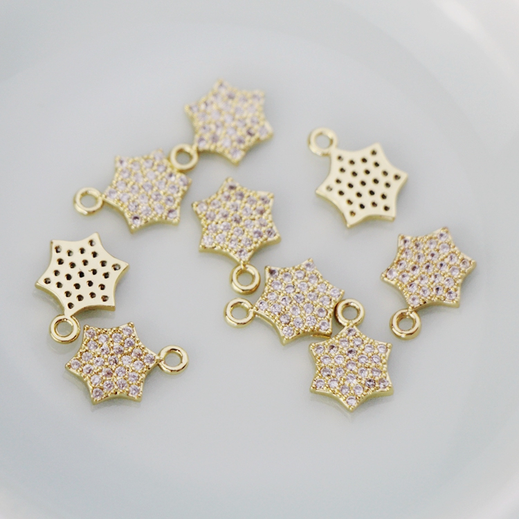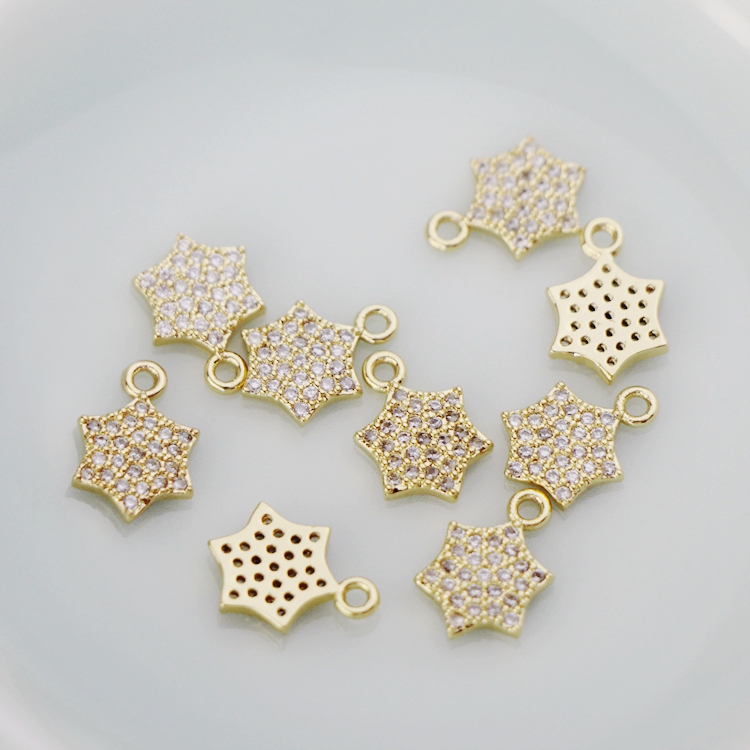 14K Bag Gold Six-Mount Stars Micro-Inlaid Small Zircons Pendant Pendant Diy Bracelet Handmade Ornament Accessories Material