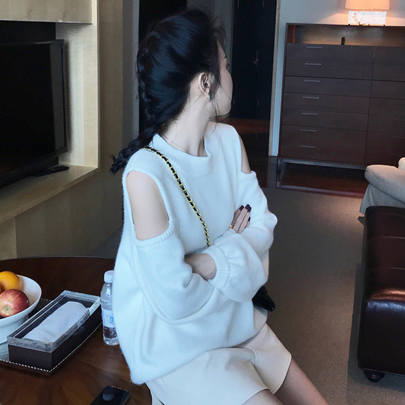 Design sense woman taste slim sexy dew shoulder coat Lazy Sleeve Hooded Sweatshirt Hooded Sweatshirt Woman Autumn Winter