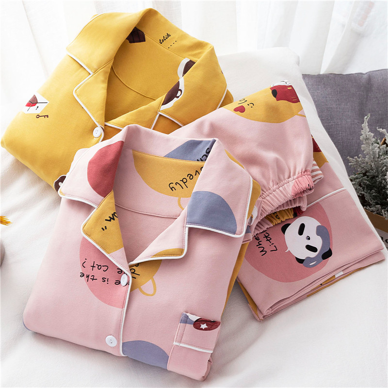 Sleepwear Lady Spring Autumn Pure Cotton Long Sleeves Two Sets Students Full Cotton Fall Autumn Winter Net Red LOVELY HOME SUIT SUIT