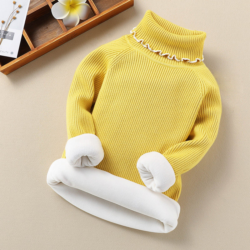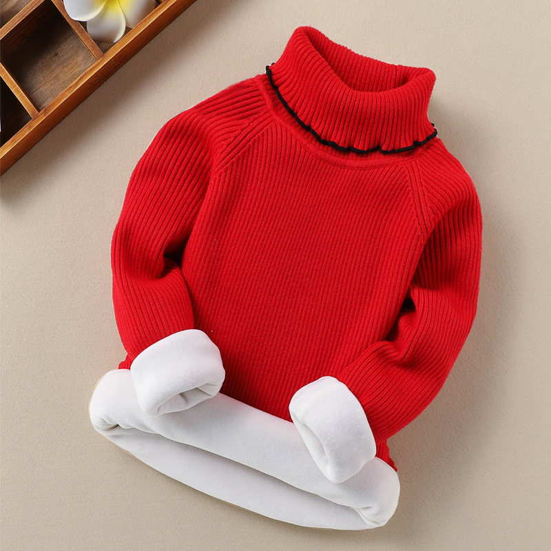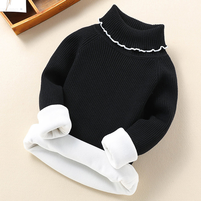 Girl High Collar Sweater 2023 Autumn Winter New Children Plus Suede Thickened Undershirt Girl Foreign Piste Cardiovert Knitwear-Taobao