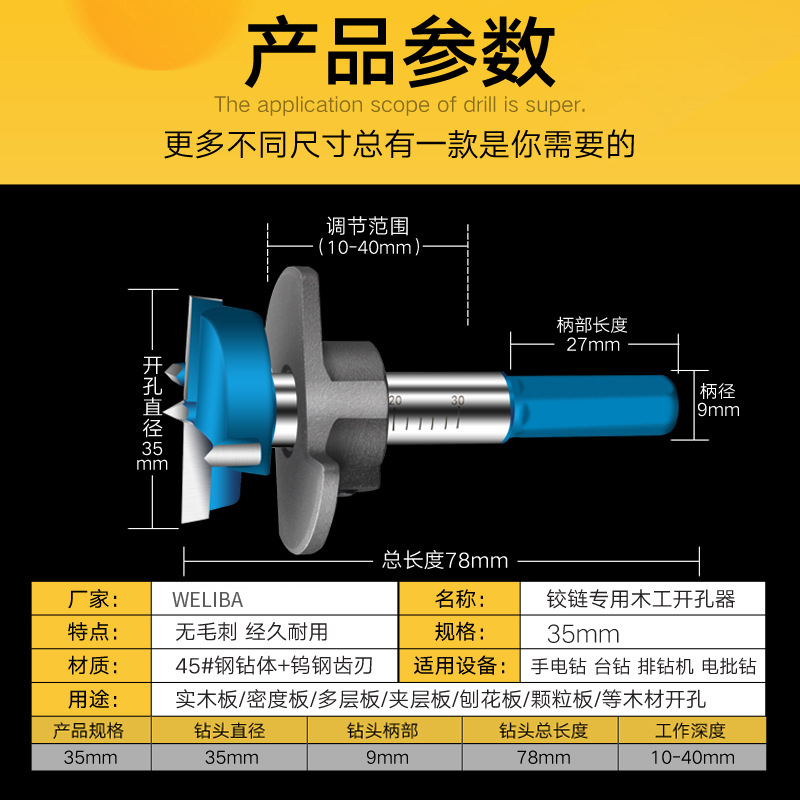 35 40mm adjustable positioning hinge special tungsten steel wood opener solid wood laminate hole