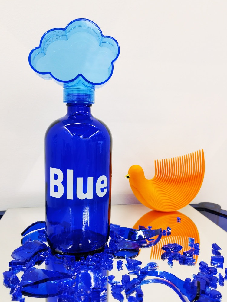 (Blue Time) Blue Klein Glass Vase Living Room Desktop Decoration Ornament Creative Art Simulation Flower