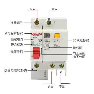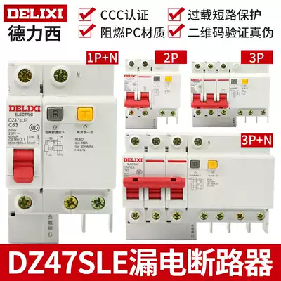 Delixi leakage protector 32a Air switch 1p Circuit breaker 2p air open 63a Air conditioner DZ47SLE leakage protection N