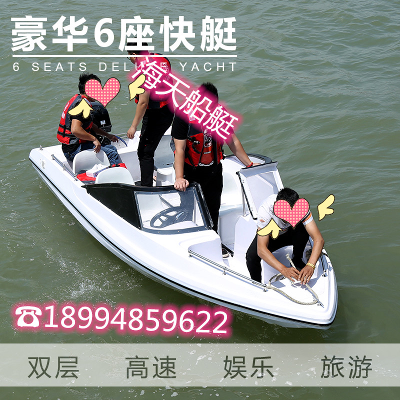 Double-layer luxury fiberglass speedboat assault boat boat yacht Sea Fishing small high-speed fishing boat sightseeing boat cruise boat