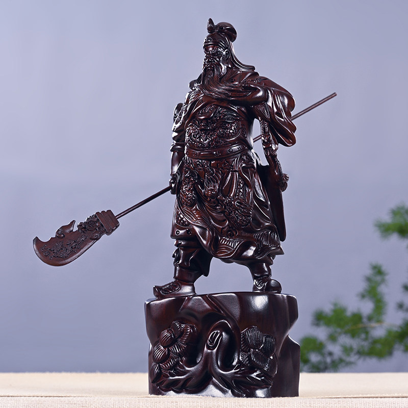 Guan Male Wood Carving Swing Piece Crossknife Martial Arts God Guan Plums of red wood Buddha Living room Creative Merchants Town Residence Solid Wood Craft Gift Hem