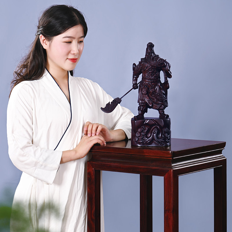 20cm High Precision Carved Black Sandalwood Horizontal Knife Guan Gong (Other Sizes Have Goods Consultation Customer Service) (High 30m) Hand Fine Carved Black Sandalwood Cross Knife Guan Male (high 40m) Handmade finely carved black sandalwood