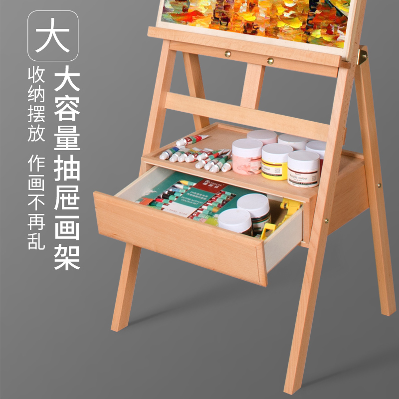 Imported beech wood with drawer drawing board Easel set bracket lifting portable multi-function folding 4K sketch sketching Solid wood oil painting frame Wooden children beginner art students with shelves