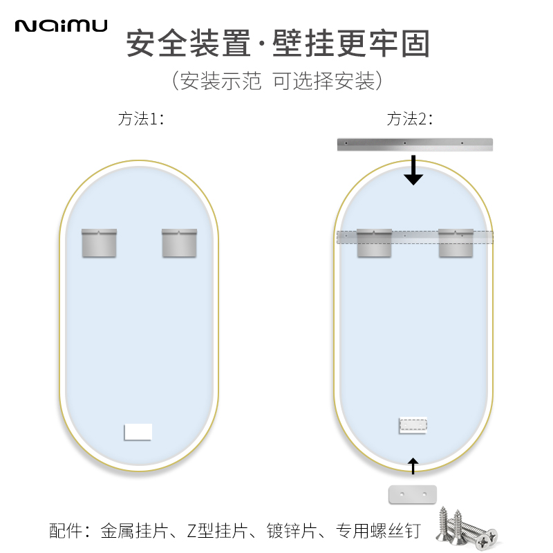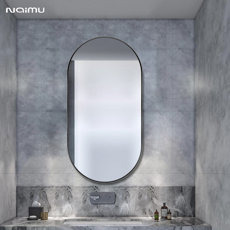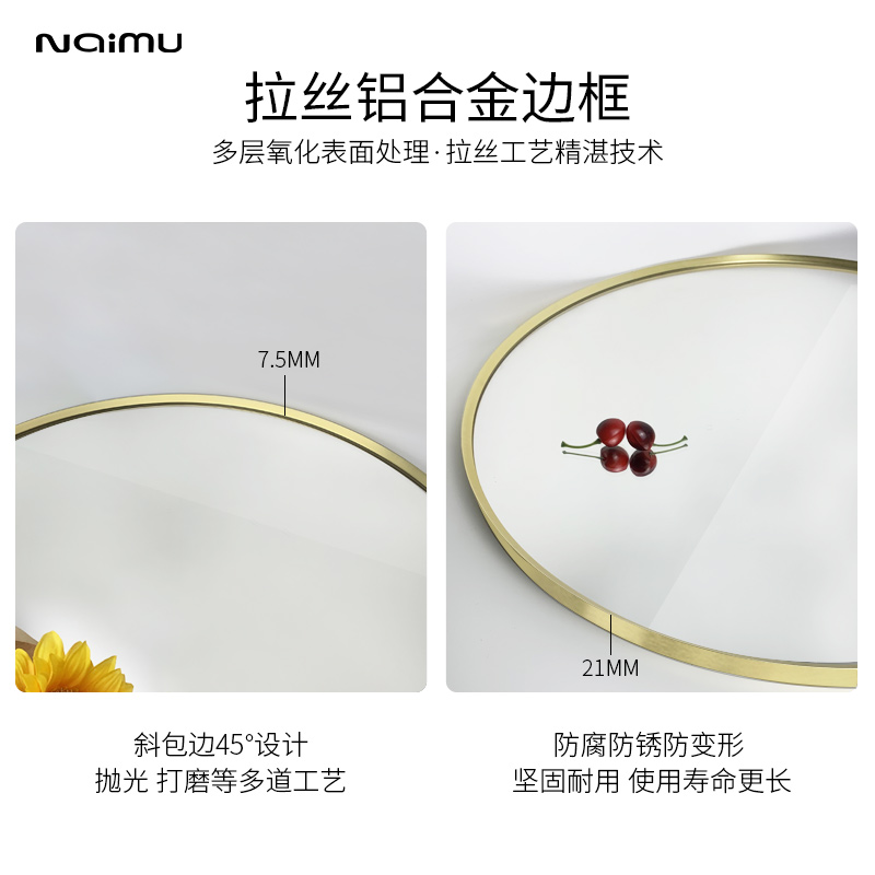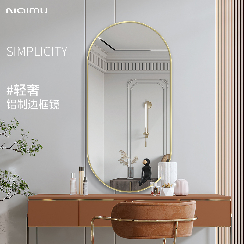 Oval Bathroom Mirror Hanging Wall Style Light Lavish Makeup Room Mirror Sticker Wall Golden Frame Makeup Mirror Bathroom Mirror