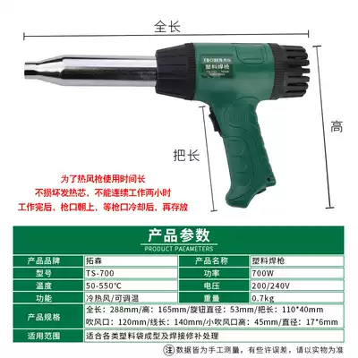 Tuosen hardware tools 700W temperature regulating hot air gun PP PVC plastic welding gun handheld welding rod baking gun plastic welding gun