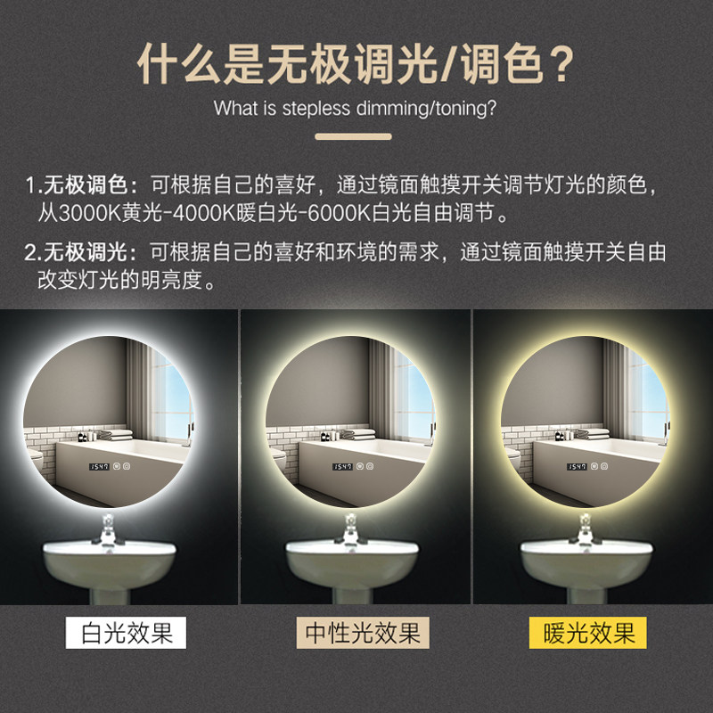 White light No touch Anti-fog warm light No touch anti-fog white light Single touch anti-fog warm light Single touch anti-fog white light Dual touch time temperature display Anti-fog warm light