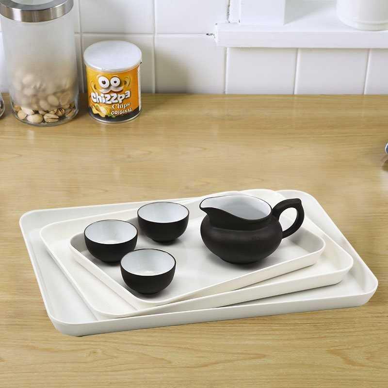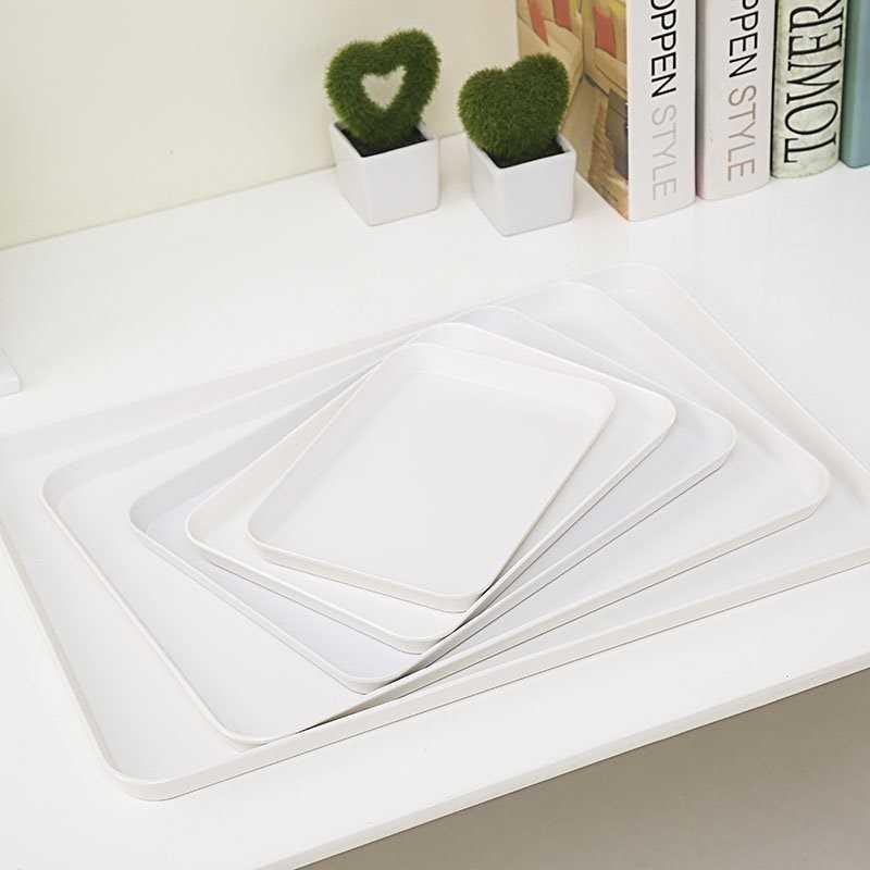 Thickened Plate Plastic Melamine tray rectangular plastic tea tray Home white European-style bread dumplings plastic