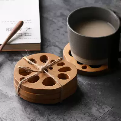 Wood said beech wood lotus root coaster creative solid wood kung fu tea cup holder Mark coaster heat insulation pad anti-hot tea cup pad