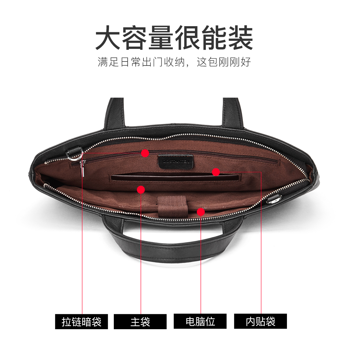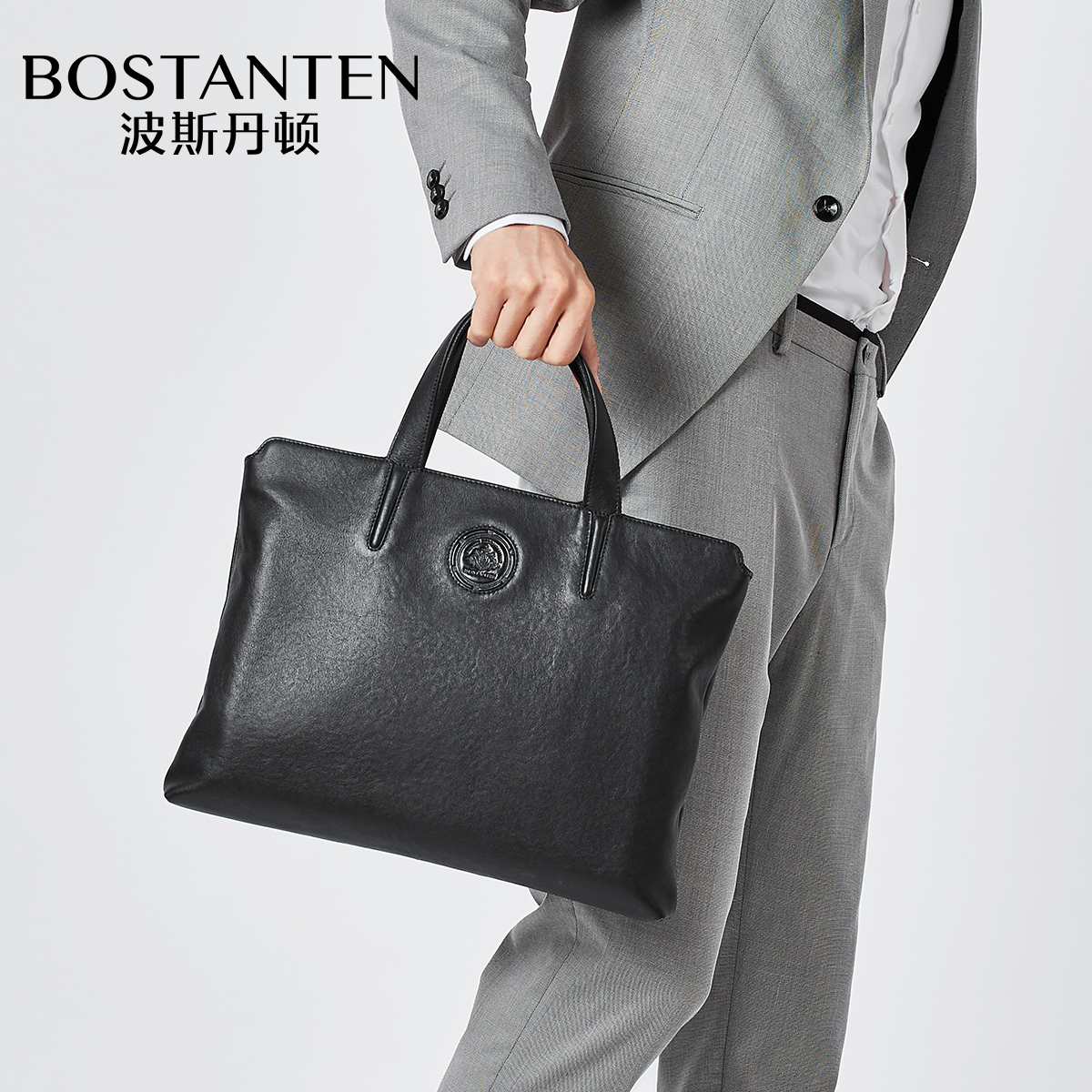 Bostenton leather handbag men's large-capacity cowhide computer briefcase business portable simple men's bag