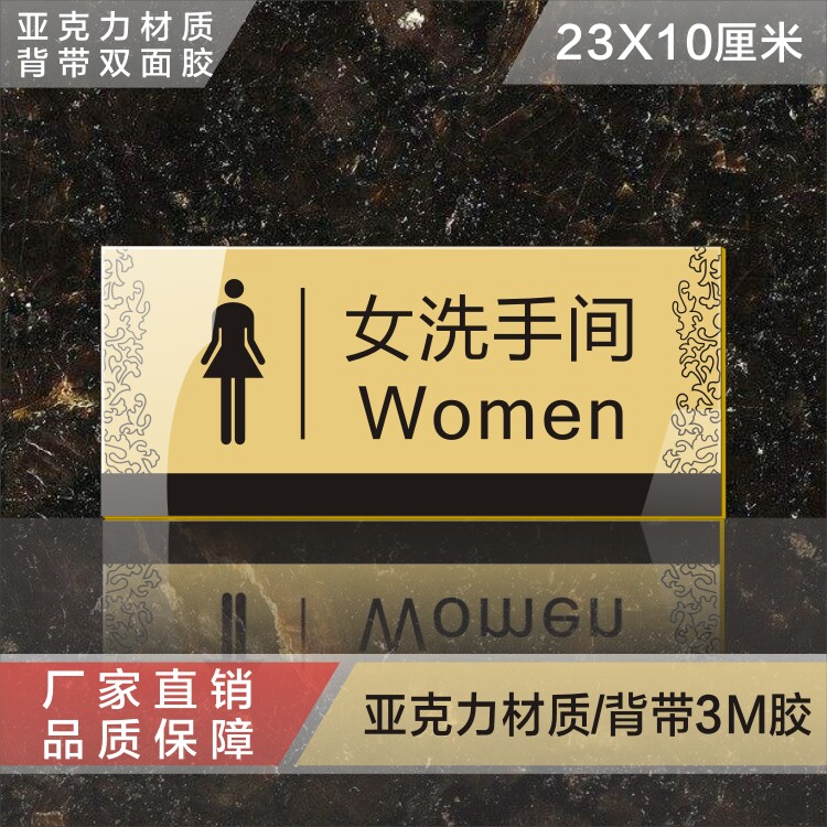 Acrylic golden men's and women's restroom door number dressing room sign door sticker toilet please go to the second floor warm reminder sign sign hotel hotel men's and women's toilet sign sign sticker wall sticker