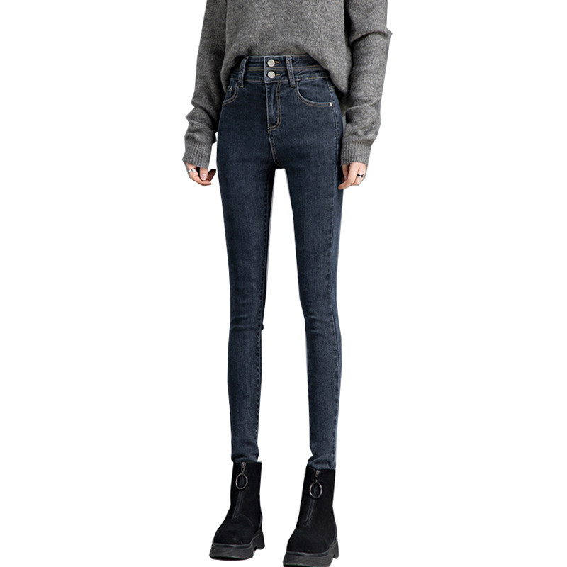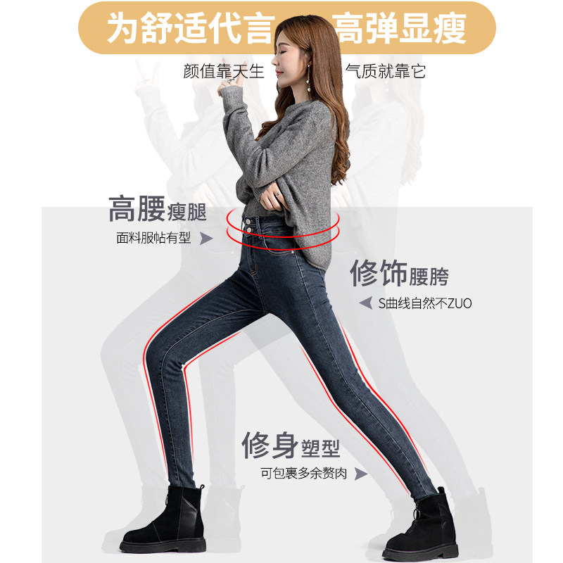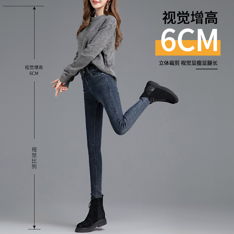 High - waist jeans women in autumn 2023 new Han edition recreation slim plus thicker pencil pants