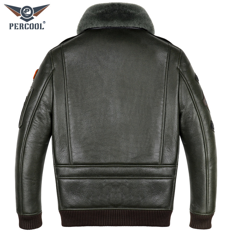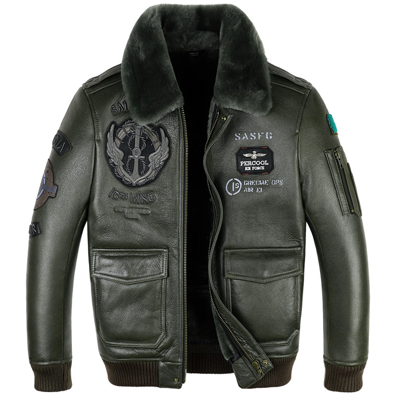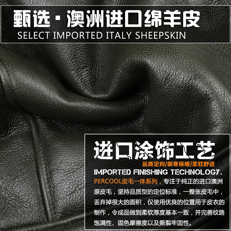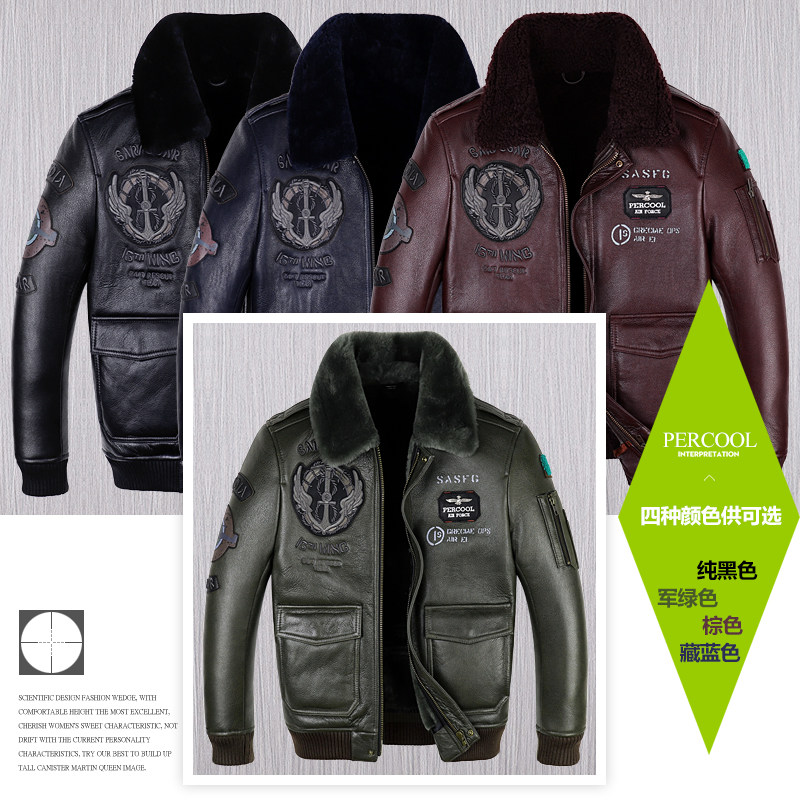 Genuine leather Real fur Australian fur one-piece flight suit Leather leather jacket men's short motorcycle suit fur coat Winter