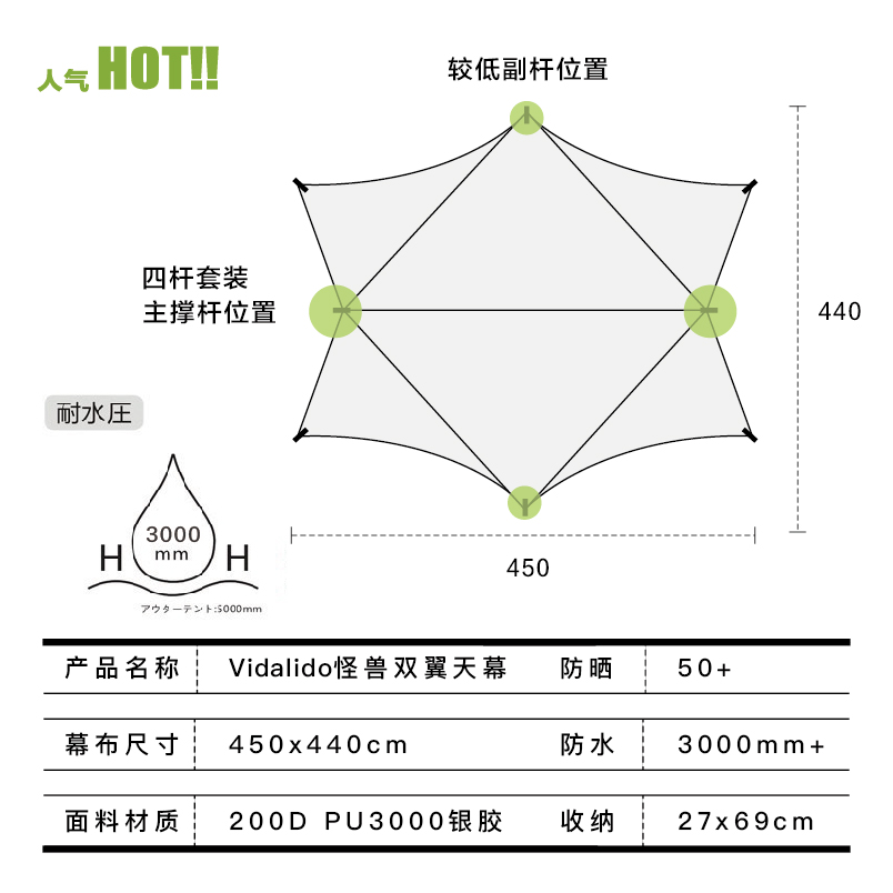 Vidalido outdoor camping sunshade anti-ultraviolet canopy rainproof sunscreen heat insulation camping pergola multi-person tent