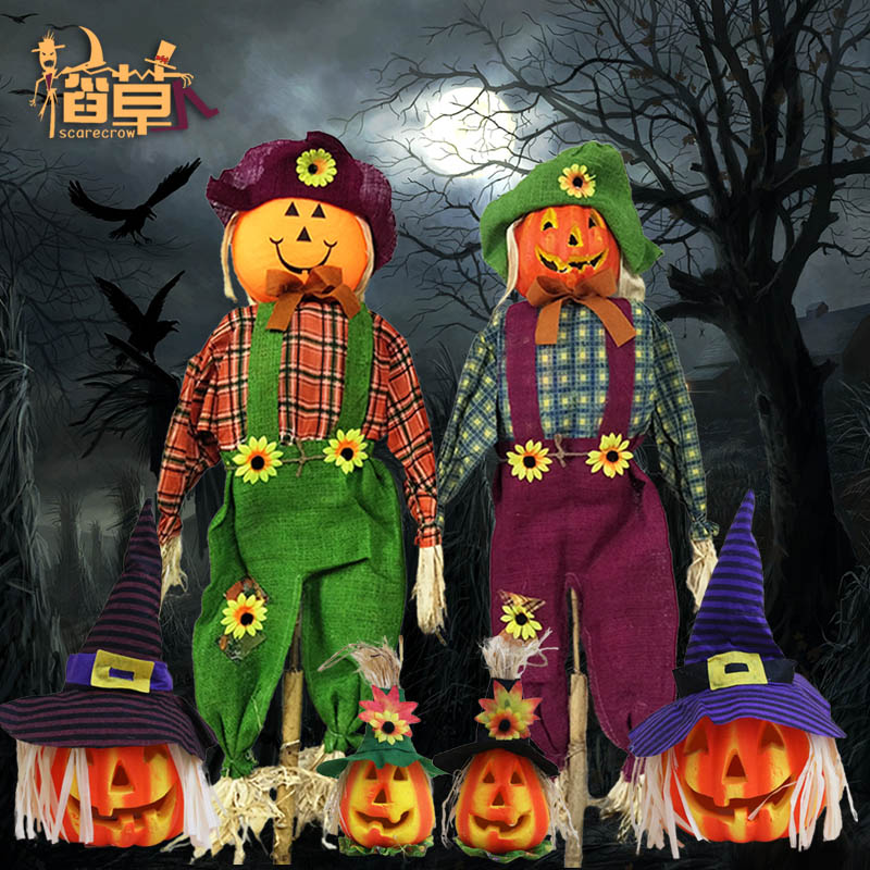 The Halloween Grand Pumpkin Rice Straw Man Pumpkin Decoration Plug-in Mall Kindergarten Fields Garden Wind Scene Arrangement Props