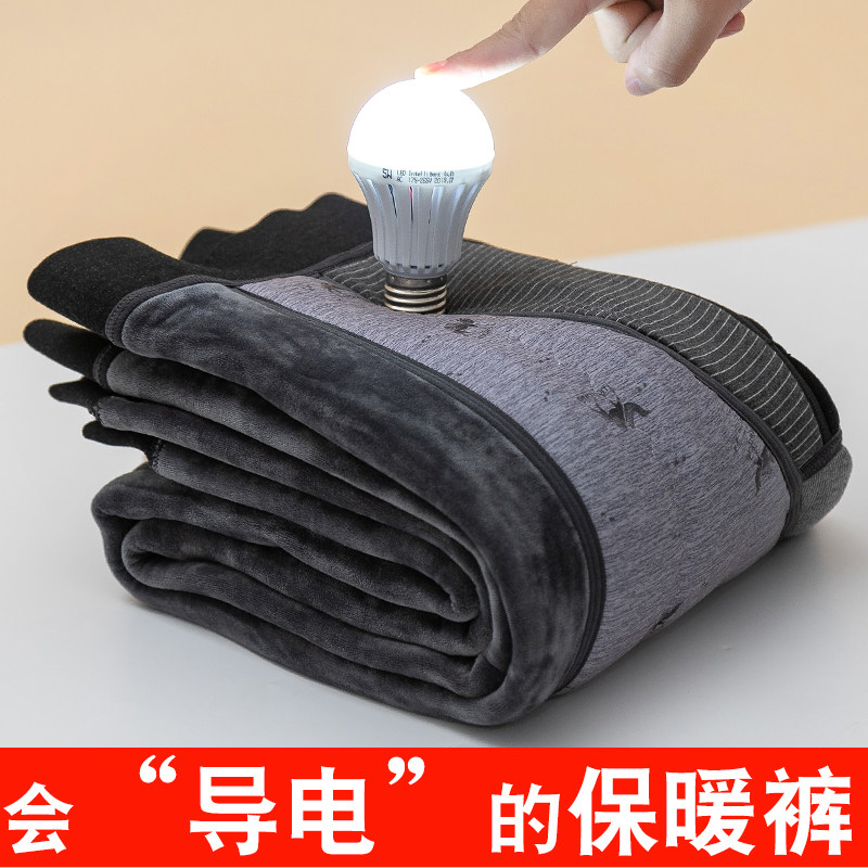 Silk cotton pants Men's graphene velvet thickened warm pants one-piece knee pad waist protection winter Northeast extra thick velvet pants