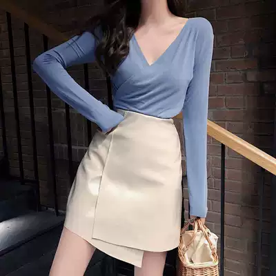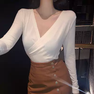 Black V-neck sweater women's spring and autumn thin section 2021 clavicle inner pullover long-sleeved slim slim bottoming shirt