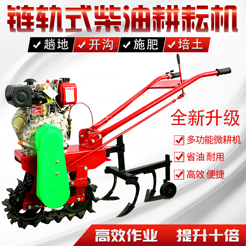 New-style diesel gasoline ground machine crawler chain track single-wheel plow machine single-wheel micro-cultivator fertilization seeder