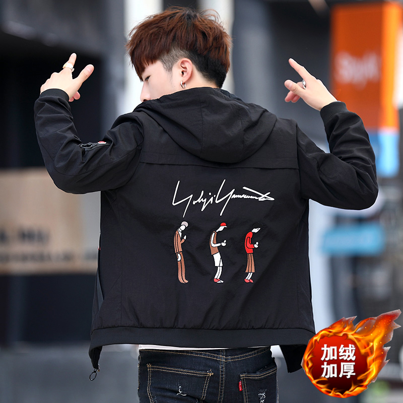 Men's jacket autumn and winter 2022 new tooling plus suede jacket thickened trendy teenagers spring and autumn Lianhood male jacket