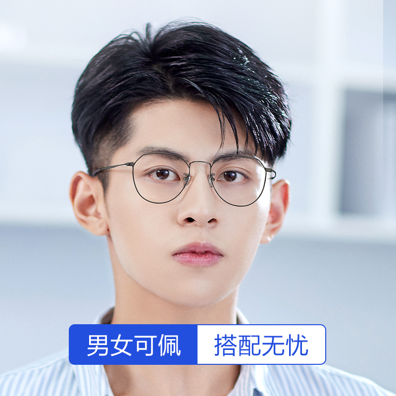 Price myopia glasses women can be equipped with degrees ultra-light large face eye frame polygon pure titanium anti-blue light