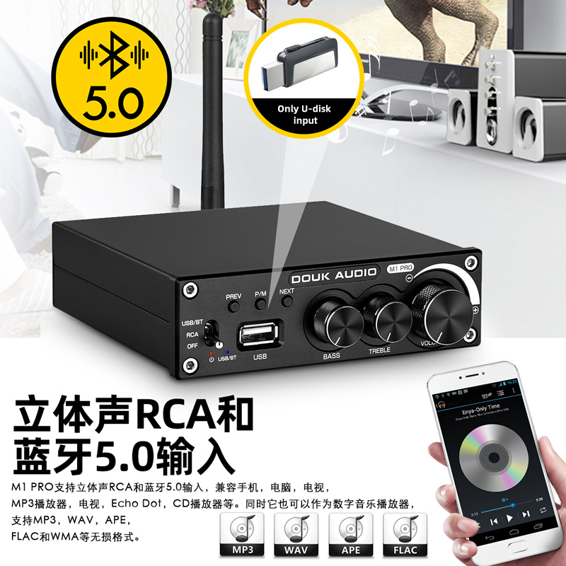 160W*2 high power Bluetooth 50 digital amplifier USB distortion-free music player subwoofer amplifier high and low sound