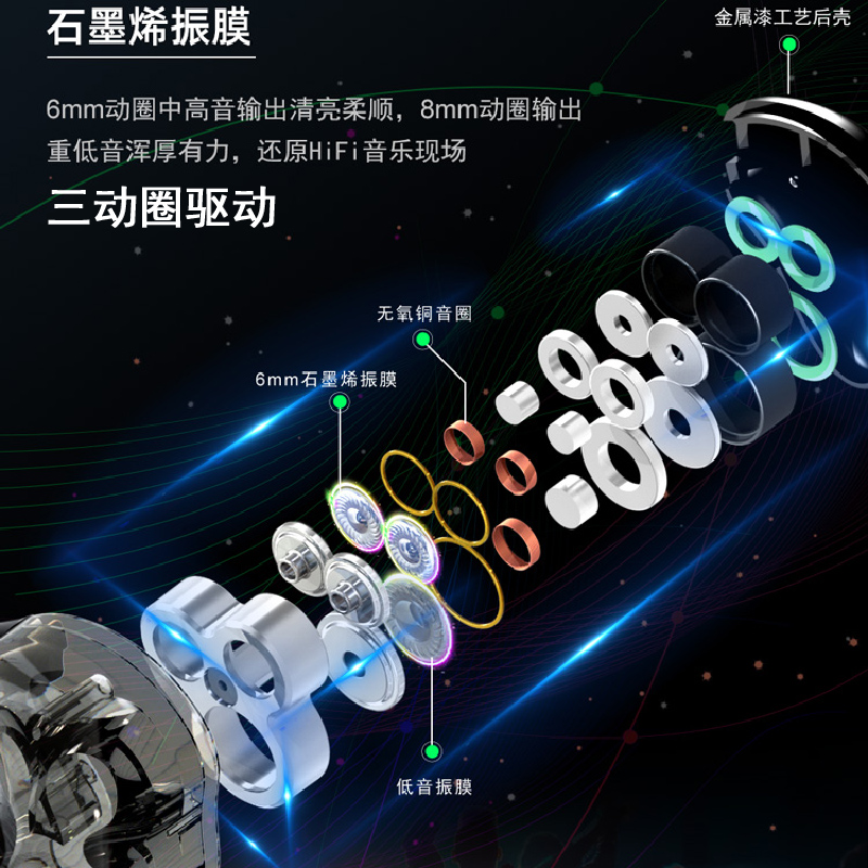 Six-core six-moving coil earphones in-ear high-quality eating chicken music learning heavy bass without asking for help to open a shop