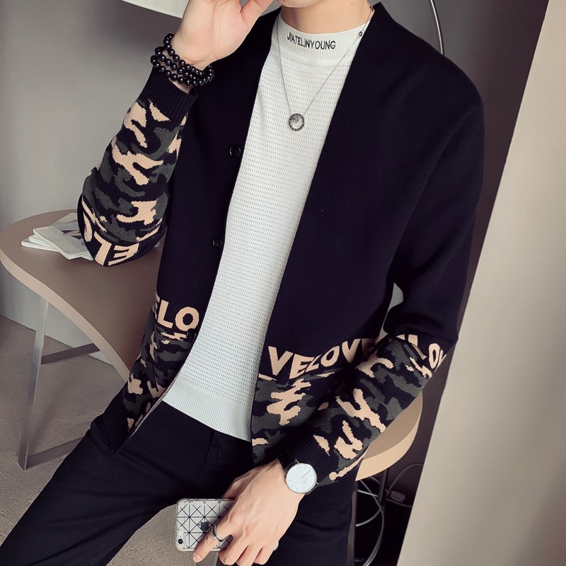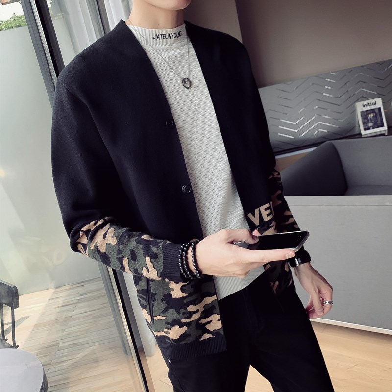 Thin cardigan men's knitwear spring and autumn long-sleeved jacket slim Korean version trend camouflage casual all-match men's sweater